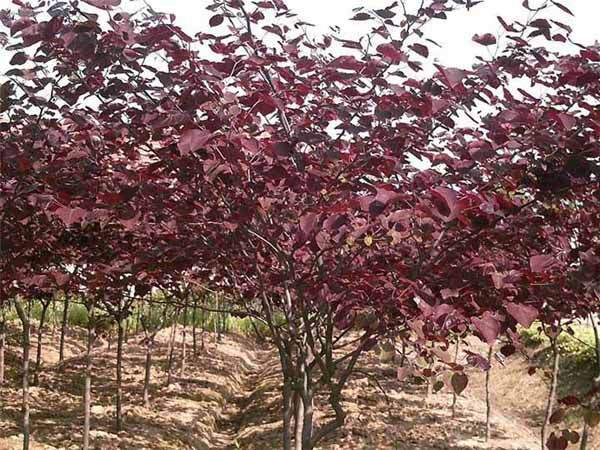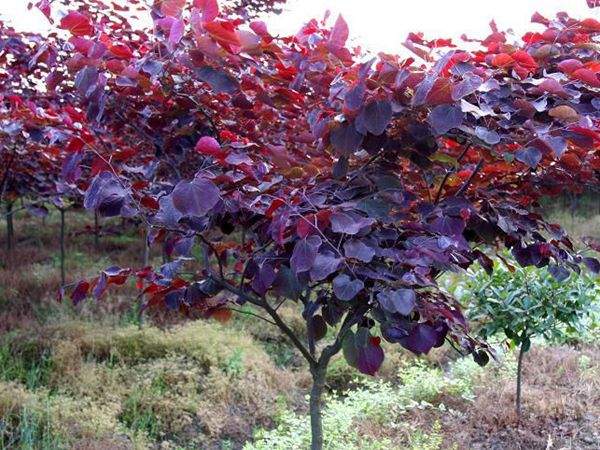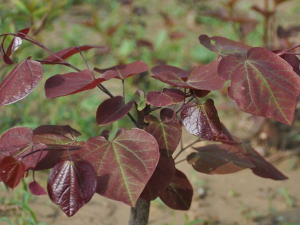 紅葉加拿大紫荊(也稱紫葉加拿大紫荊)屬落葉灌木,株高6--10米,冠幅8--12米。葉片心型,春、夏、秋三季葉色均為亮麗的紫紅色,嫩梢一直呈瑰麗的紅色。花苞紫紅色,花多,花期3--4月。適應性強,較中國紫荊耐寒。在酸堿性土壤及干旱濕潤土壤都可生長。既可種于庭院、公園,又可種于路邊,是極佳的風景園林樹種。